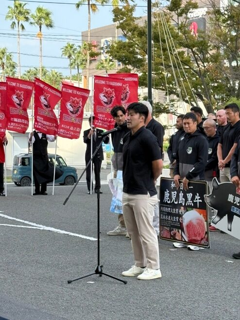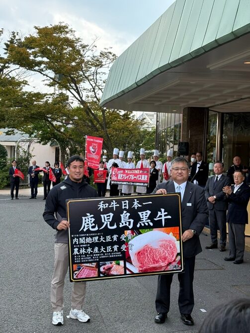 27日(月)に歓迎式が行われ,鹿児島県からは激励品としてかごしま黒牛🐄を贈呈しました🐮東京ブレイブルーパス東京が鹿児島市で合宿を行うのは7年連続22回目です🎉今シーズンも,鹿児島での公式戦が決定しています✨