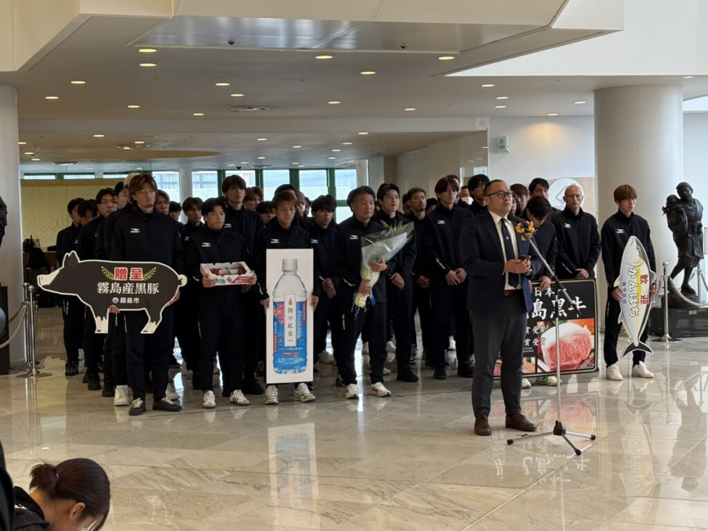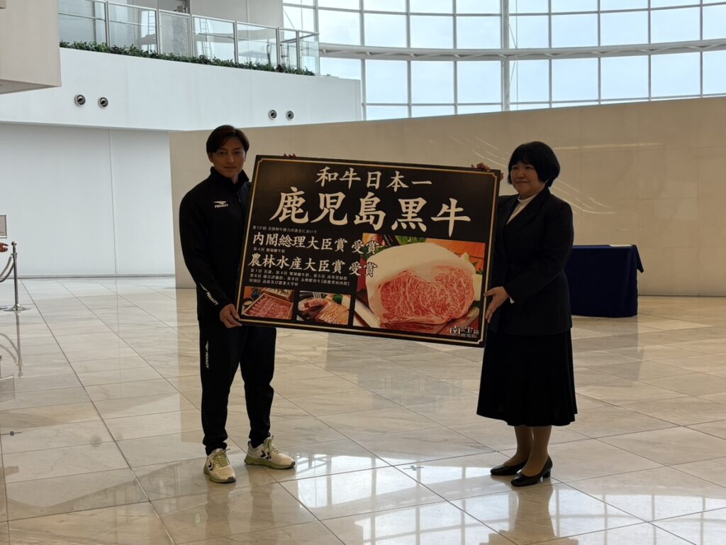 1月18日(日)に歓迎式が行われ、鹿児島県からは激励品としてかごしま黒牛🐮とカンパチ🐟を贈呈しました🐄🎣