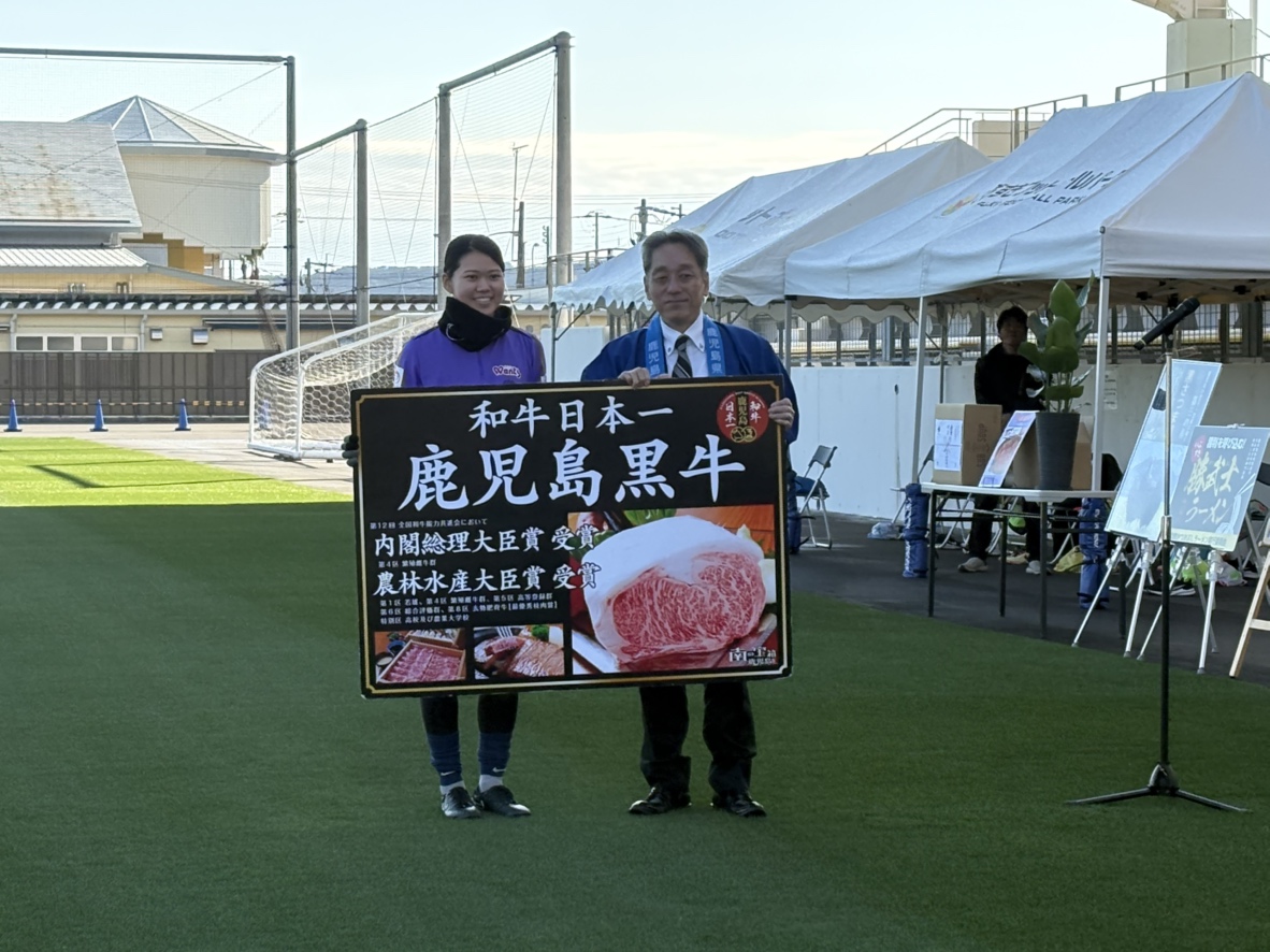 1月26日(月)に歓迎式が行われ、鹿児島県からは激励品としてかごしま黒牛🐮を贈呈しました🐄